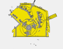 反擊式破碎機進料粒度不超過500mm、抗壓強度不超過350MPa的各種粗、中、細物料(花崗巖、石灰石、混凝土等),其特點是體積小,成品呈立方體,構(gòu)造簡單,破碎比大,生產(chǎn)能力大,產(chǎn)品粒度均勻,并有選擇性的碎石作用。